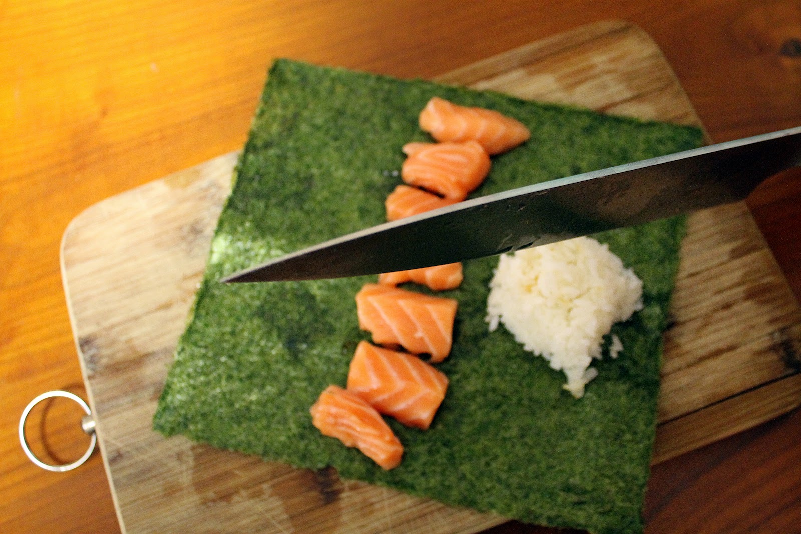 yesterday I have slept over at my best friend which was the reason why I had not posted anything. With what we had been so busy? Just look at the picture below. When you want to know how to make some awesome salmon-makis the Meroda & Caro way here comes a little tutorial.